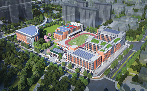 以心育人,乐水乐山;五院四园,配套齐全;共享资源,带形发展;国际书院,天海之间。